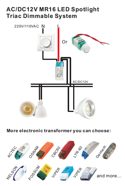 Compatible with Clipsal/ACTEC/OSRAM/NELSON/POSSUM/VIPER/PHILIPS etc. dimmable electronic transformer.